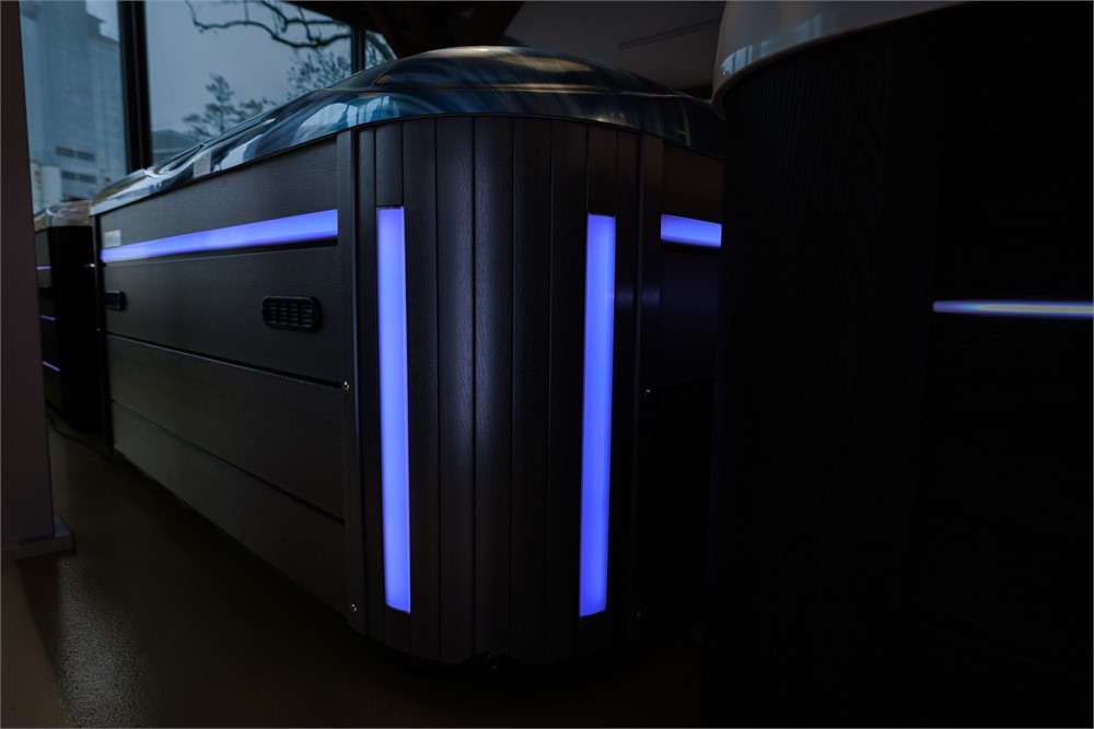 Die beleuchtete Verkleidung verleiht diesem Gerät seinen edlen Touch. Aufgrund seiner tiefen Ausformung eignet sich dieses Modell ebenfalls hervorragend für grosse Personen.