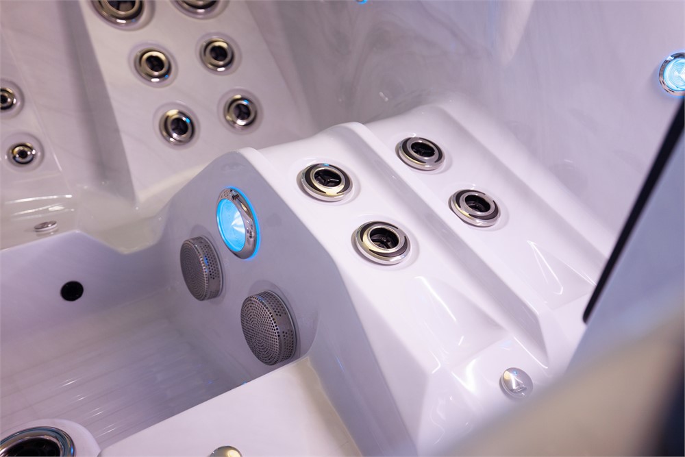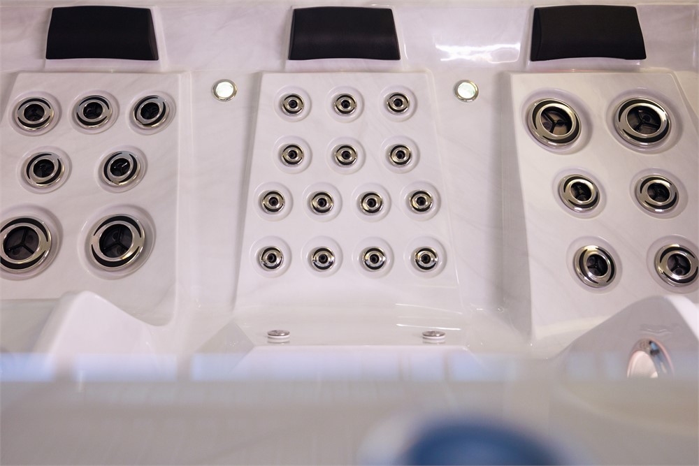 Steigen Sie ein und lassen Sie sich von insgesamt 68 Düsen herrlich massieren. Die leistungsfähigen Massagepumpen garantieren eine starke Wasserdruckleistung. Durch die 2-stufige Pumpe bietet dieses Modell die Möglichkeit einer druckreduzierten Feinmassage an. Des Weiteren kann über das Luftsprudelgebläse nach Wunsch Luft durch die 12 «Champagner-Düsen» zugeführt werden.