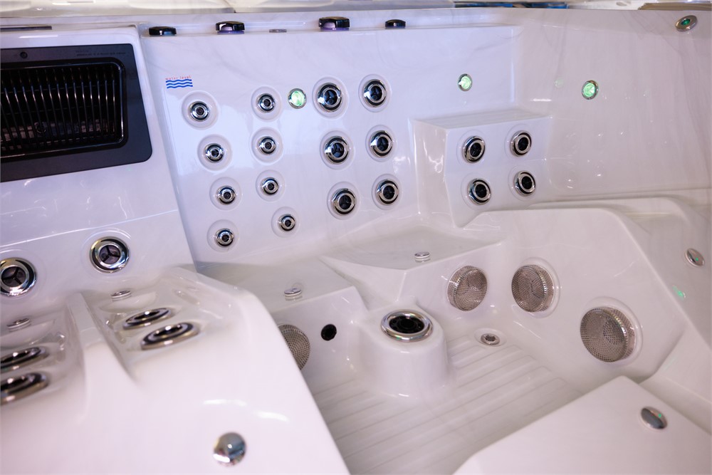 Der Nova II Serie II ist mit einer hochwertigen farb- und wetterbeständigen Kunststoff-Verkleidung ausgestattet. Aufgrund seiner tiefen Ausformung eignet sich dieses Modell ebenfalls hervorragend für grosse Personen. Die LED-Beleuchtung in den Ecken verleihen dieser Wellness-Oase ihren edlen Touch.