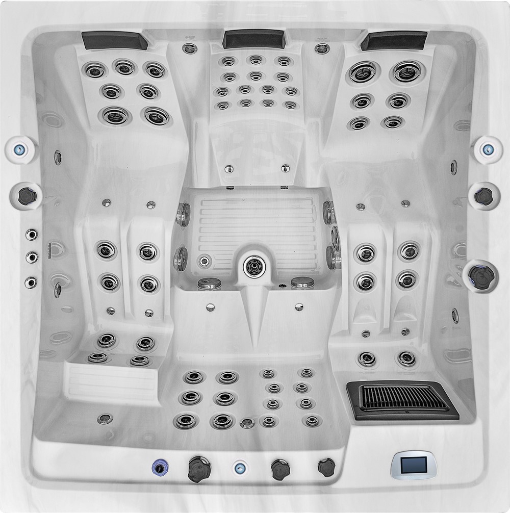 Steigen Sie ein und lassen Sie sich von insgesamt 68 Düsen herrlich massieren. Die leistungsfähigen Massagepumpen garantieren eine starke Wasserdruckleistung. Durch die 2-stufige Pumpe bietet dieses Modell die Möglichkeit einer druckreduzierten Feinmassage an. Des Weiteren kann über das Luftsprudelgebläse nach Wunsch Luft durch die 12 «Champagner-Düsen» zugeführt werden.