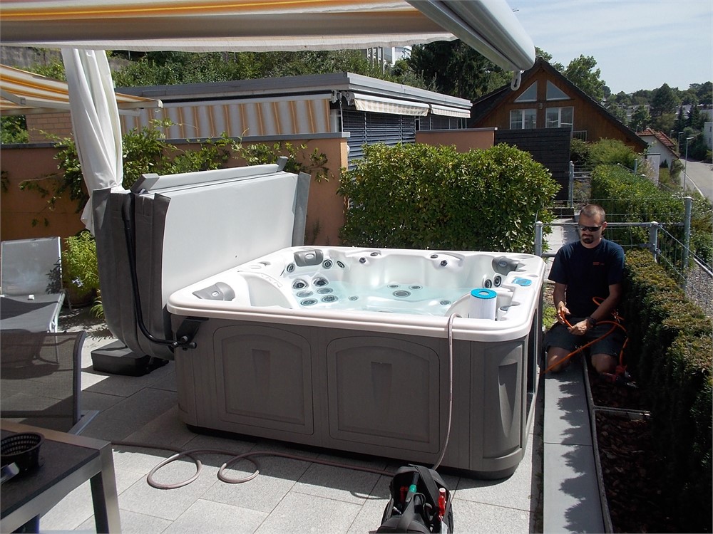Die drei Hauptpumpen garantieren eine maximale Wasserdruckleistung. Die rund um die Uhr Hauptfiltrierung und Heizung erfolgt über die Zirkulationspumpe. Der Vorteil dieser technischen Ausrüstung ist, dass das Wasser über diese geräuscharme Pumpe geheizt wird und die Hauptpumpen nur bei Bedarf eingeschalten werden.