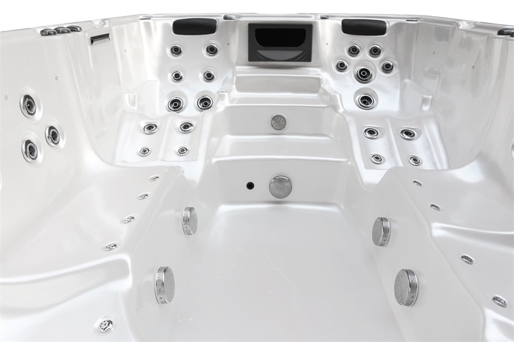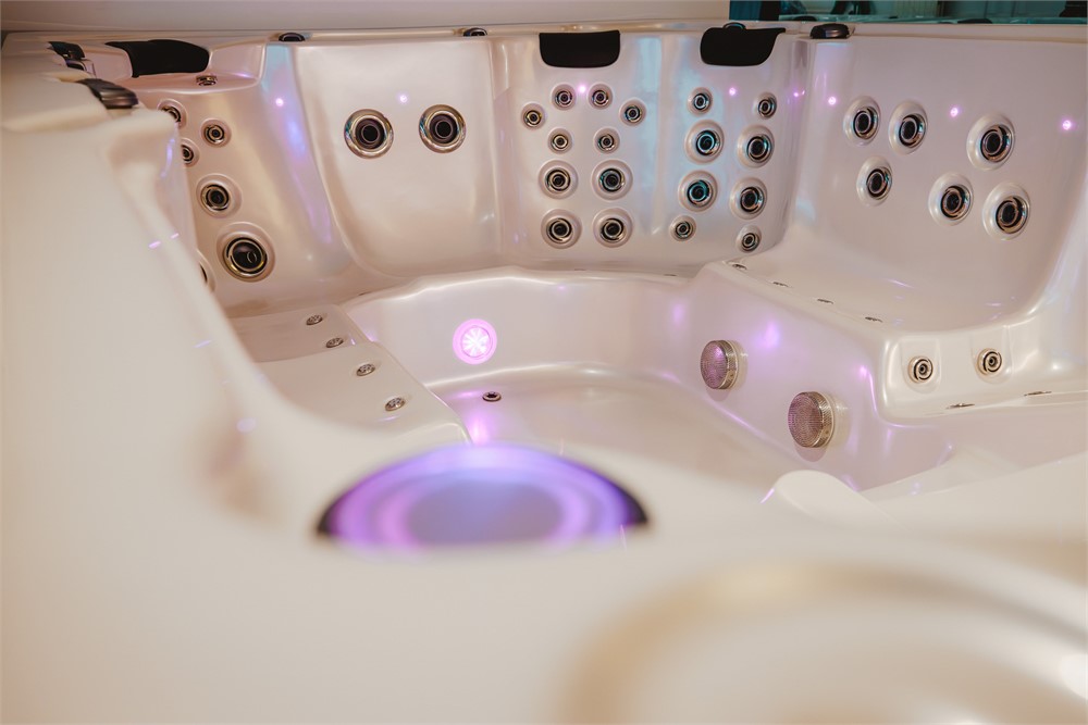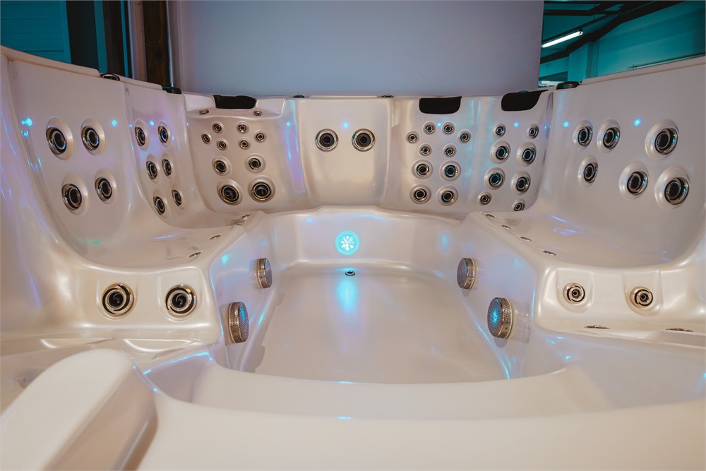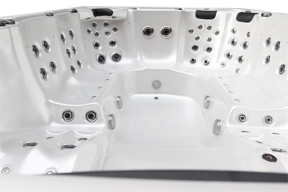 Steigen Sie ein und lassen Sie sich von insgesamt 93 Düsen und 103 Ausgängen herrlich massieren. Die verchromten mit Kunststoff kombinierten, wartungsfreien Düsenabdeckungen sind individuell und manuell einstellbar. Des Weiteren bietet dieses Modell die Möglichkeit einer druckreduzierten Feinmassage über den Gebläsemotor, welcher über 17 «Champagner-Düsen» nach Ihrem Wunsch Luft zuführt.