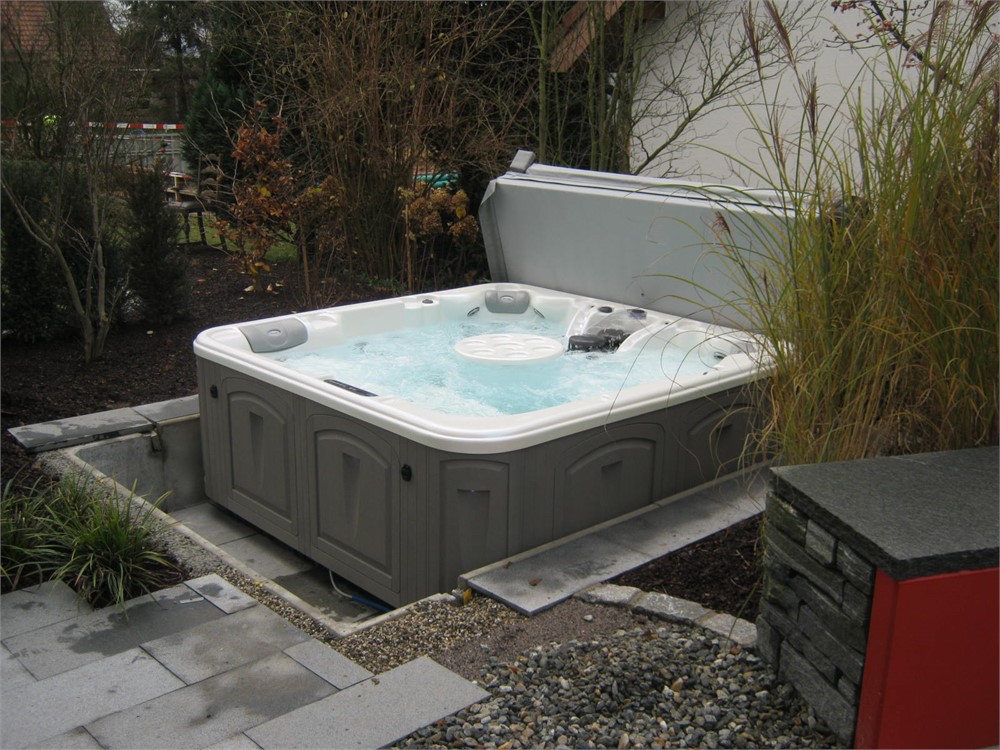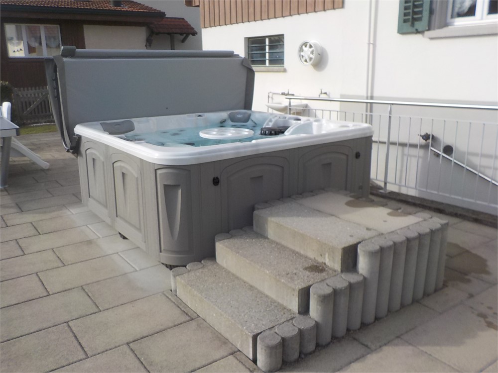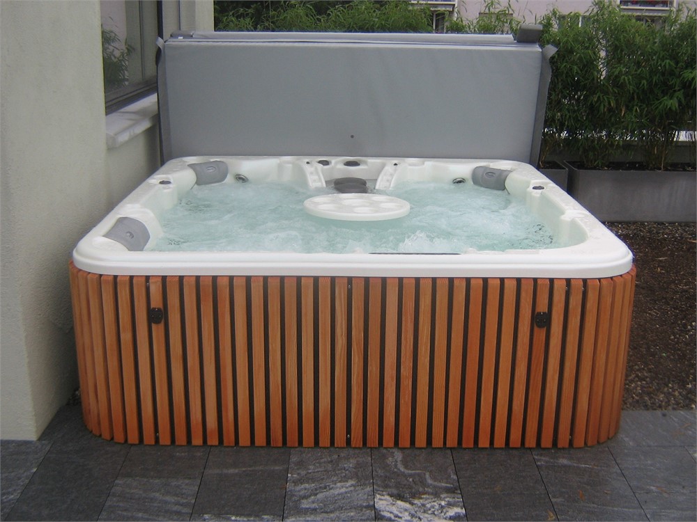 Des Weiteren ist dieses Modell aus einer rahmenlosen, patentierten Konstruktion hergestellt, d.h. kein Holz- oder Metallrahmen. Die LED-Beleuchtungen in der Aussenverkleidung verleihen diesem Whirlpool seinen edlen «Touch».